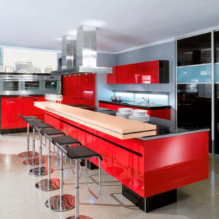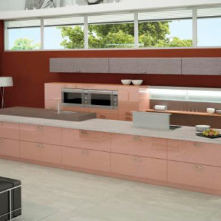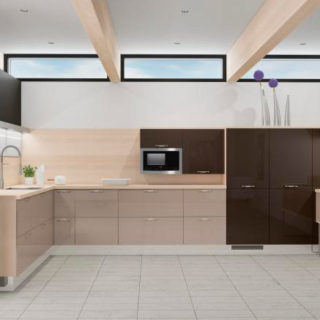 Façade laquée brillante / Façade laquée mat soyeux / Façade en verre de sécurité laqué / Façade en polymère brillant + stratifié HPL brillant