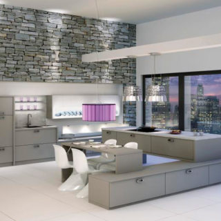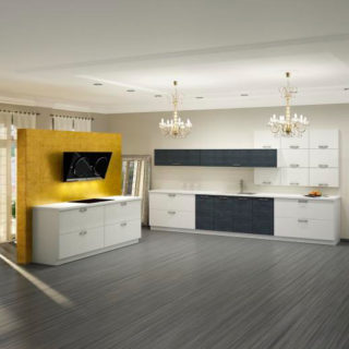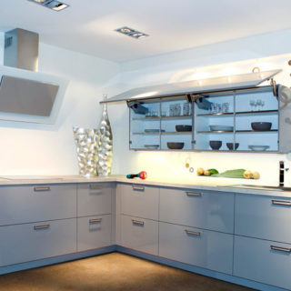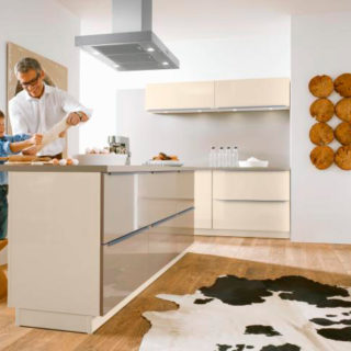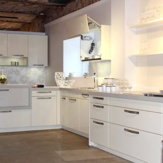 Grand choix de façades laquées brillantes mais aussi laquées mat soyeux, au toucher incomparable ainsi que nos façades très actuelles en verre de sécurité et pour finir les classiques mais indémodables polymère et stratifié HPL brillant.